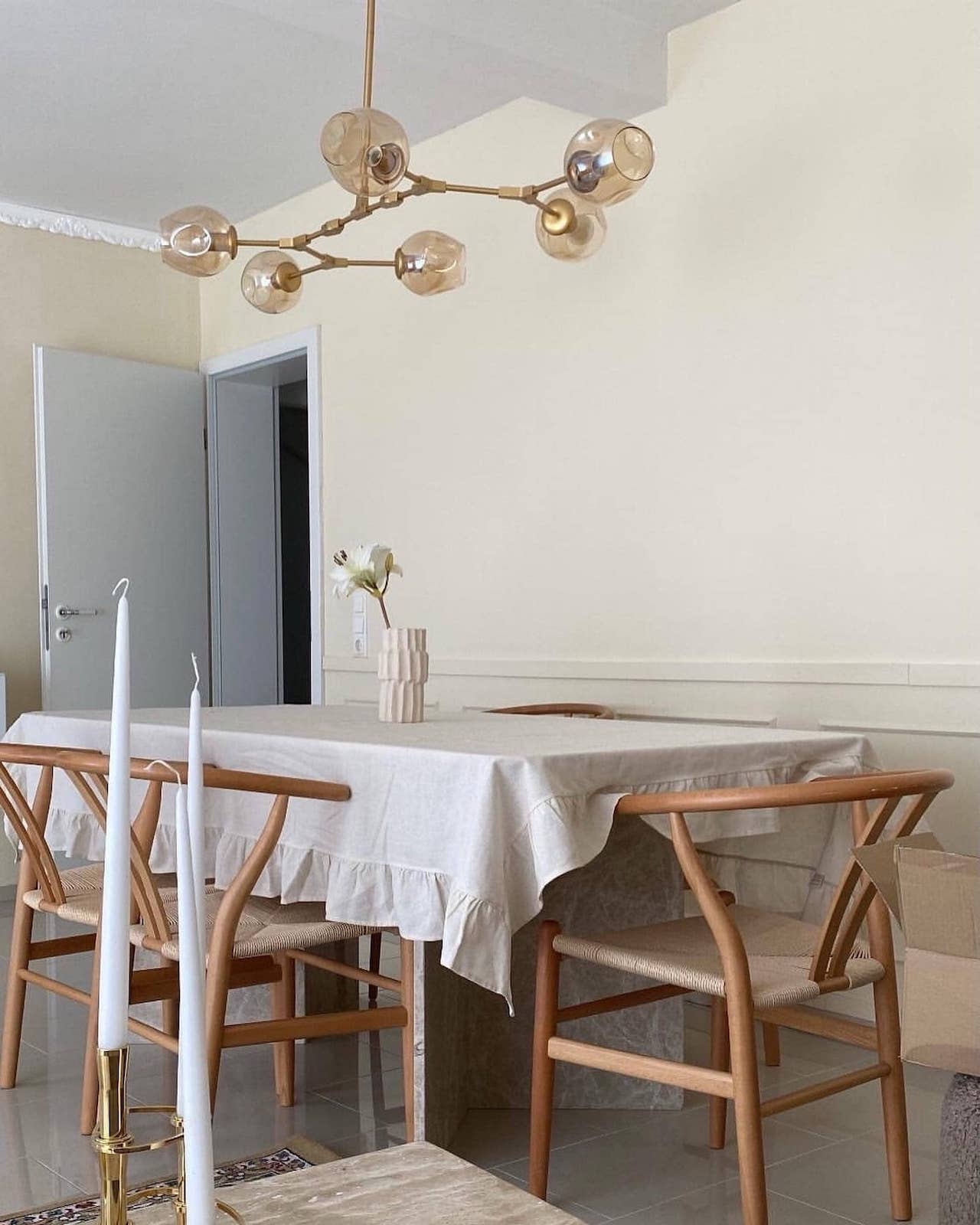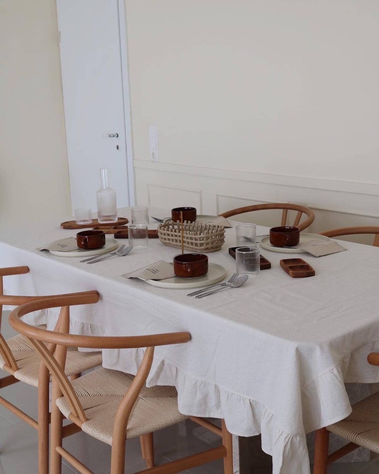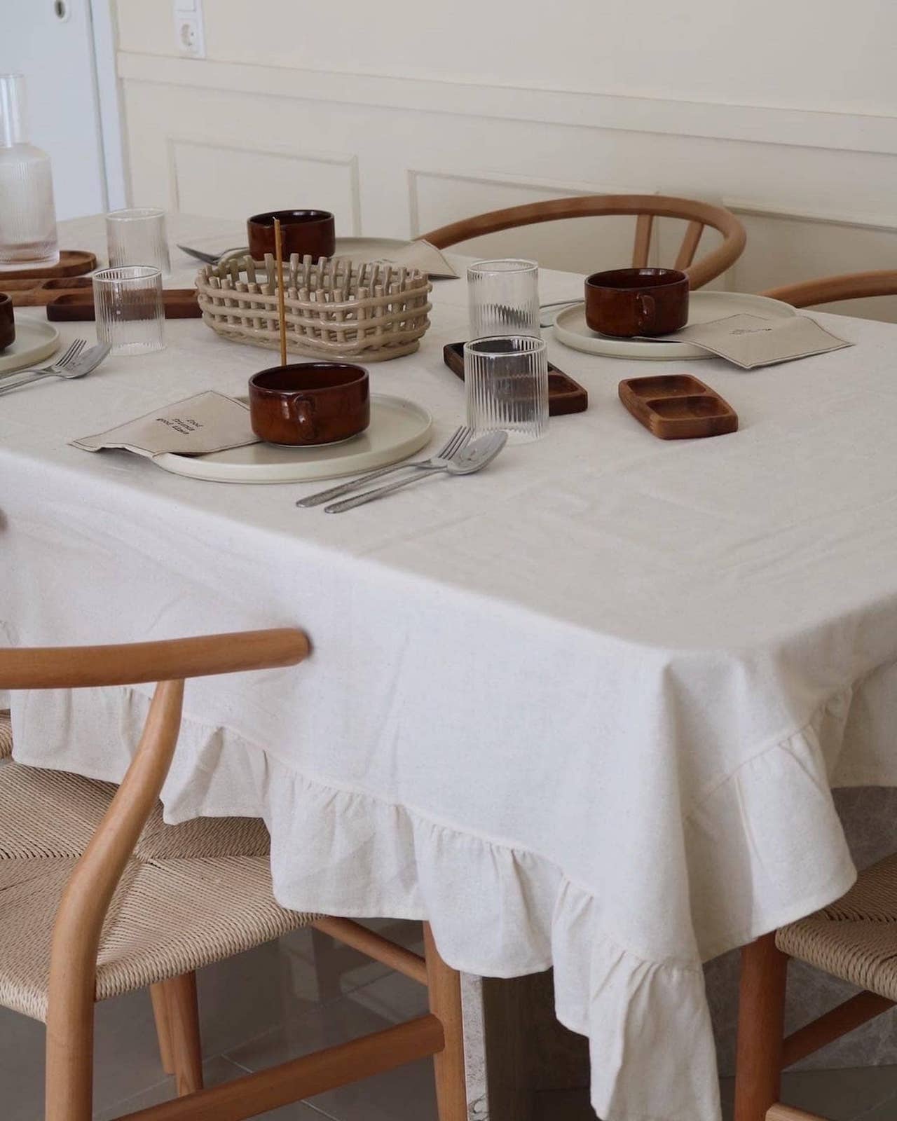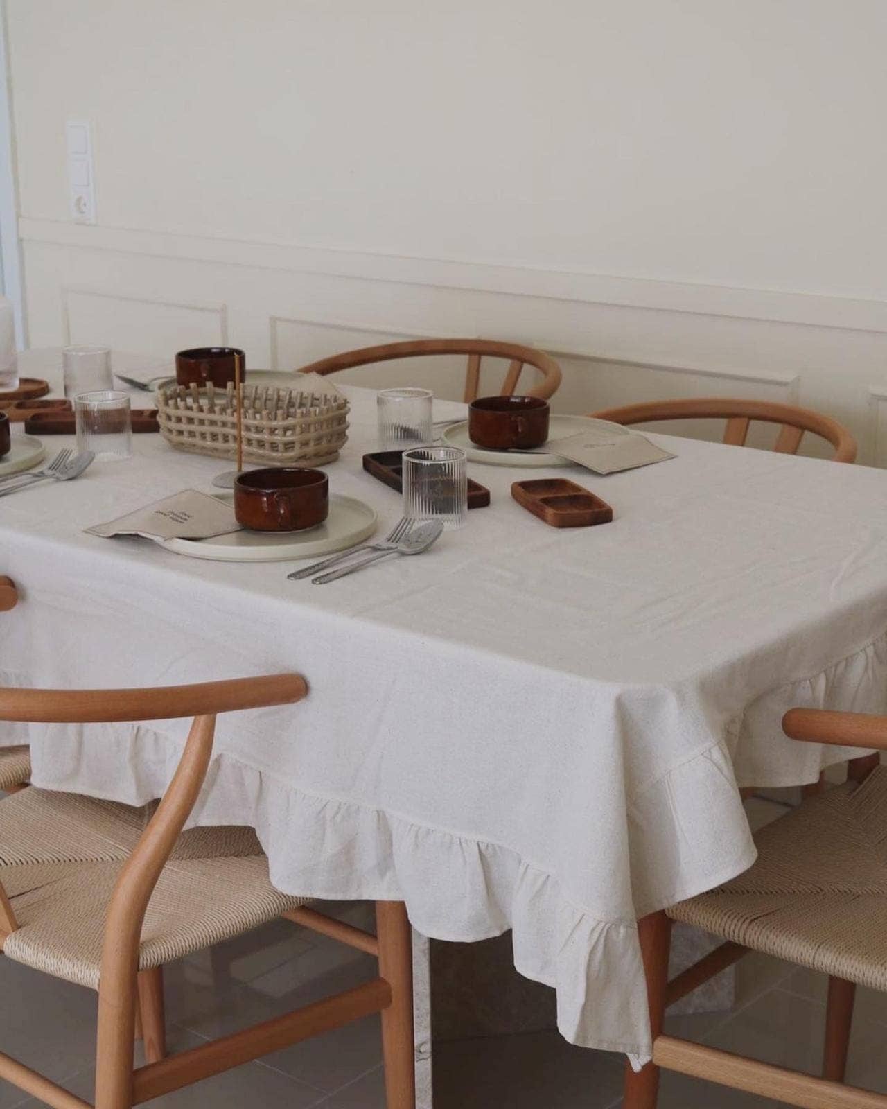 Eine tolle Tischdecke mit Volant im romantischem Stil.